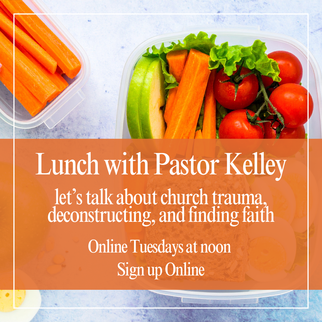 Sign up for our newsletter to get the zoom link. Grab a lunch and let’s talk about our walks. You can ask Pastor Kelley about specific verses or about church, share your story with friends, and heal together.